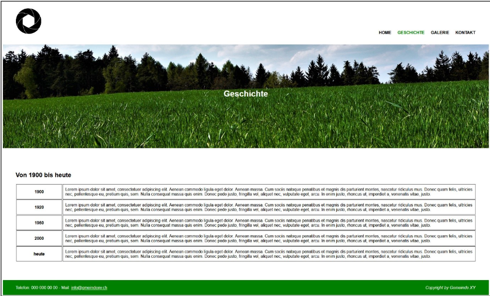 Die Seite «Geschichte» soll erstellt werden. Hierzu verwenden wir das HTML-Element Tabelle.